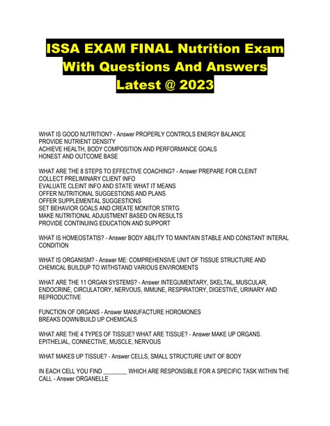Read Online ISSA NUTRITION FINAL EXAM QUESTIONS AND ANSWERS Doc